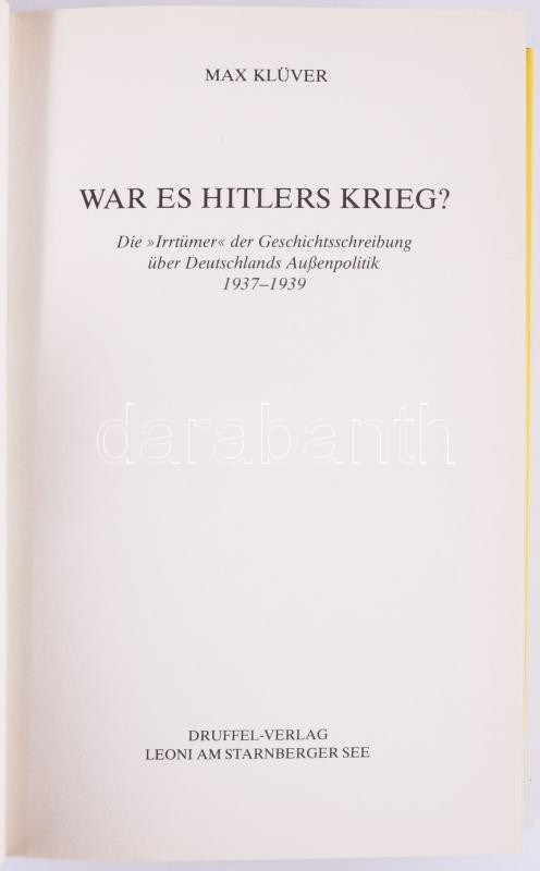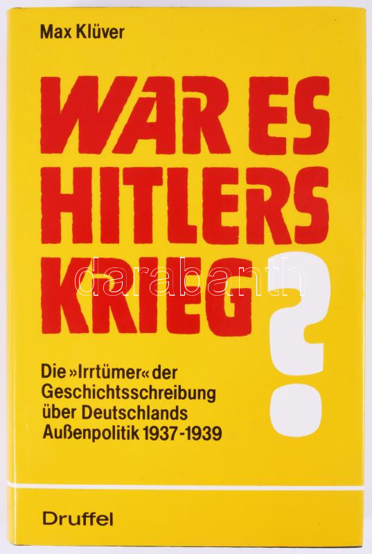 Max Klüver: War es Hitlers Krieg? Die "Irrtümer" des Geschichtsschreibung über Deutschlands Außenpolitik 1937-1939. Leoni am Starnberger See, 1984., Druffel-Verlag. Német nyelven. Kiadói egészvászon-kötés, kiadói papír védőborítóban.