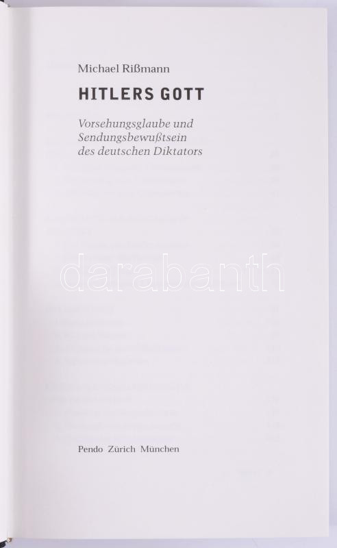 Michael Rißmann: Hitlers Gott. Vorsehungsglaube und Sendungsbewusstsein des deutschen Diktators. Zürich - München,2001,Pendo. Német nyelven. Kiadói kartonált papírkötés, kiadói papír védőborítóban.
