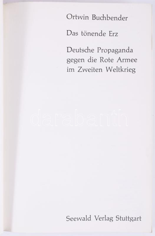 Ortwin Buchbender: Das tönende Erz. Deutsche Propaganda gegen die Rote Armee im Zweite Weltkrieg. Militärpolitische Schriftenreihe 13. Stuttgart,1978,Seewald Verlag. Német nyelven. Gazdag képanyaggal illusztrált. Kiadói papírkötés.