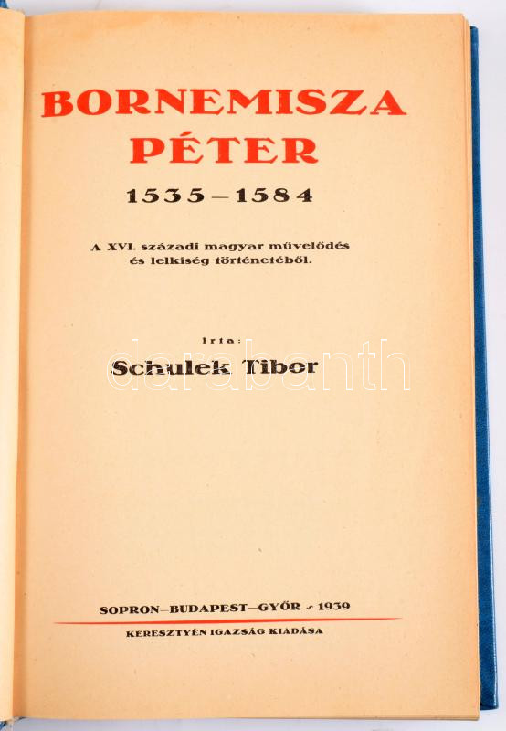 Schulek Tibor: Bornemisza Péter 1535-1584. A XVI. századi magyar művelődés és lelkiség történetéből. Sopron-Budapest-Győr, 1939, Keresztyén Igazság Kiadása. 450p. Modern műbőr kötésben