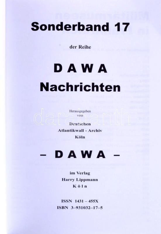 Sonderband 17 der Reihe DAWA Nachrichten. Hrsg. vom Deutschen Atlantikwall-Archiv Köln,2006,Harry Lippmann. Német nyelven. Kiadói papírkötés.