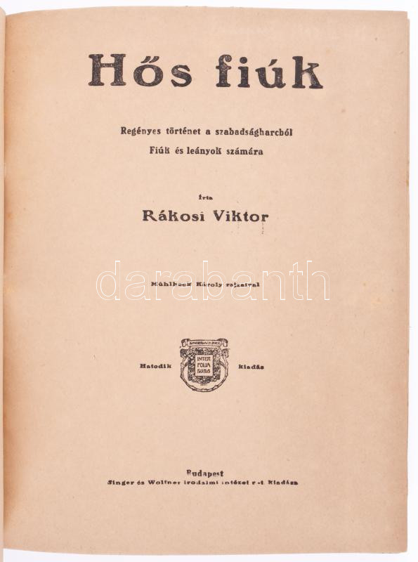 Rákosi Viktor: Hős fiúk. Regényes történet a szabadságharcból fiúk és ... https://www.darabanth.com/de/515-Auktion-Philatelie-Postkarten-Numismatik-Kunstwerke-Bucher-Schreibwaren-Schmuck/518.0/Bucher/Bucher-Marchen~1054/Rakosi-Viktor-Hos-fiuk-Regenyes-tortenet-a-szabadsagharcbol-fiuk-es-leanyok-szamara-Muhlbeck~II3492173