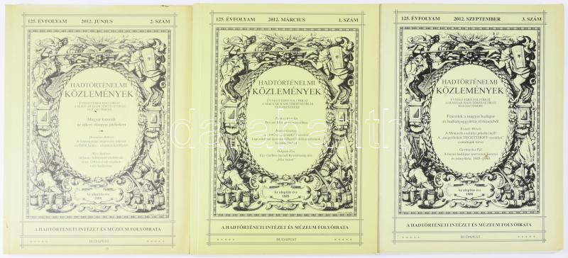 A Hadtörténeti Közlemények 125. évfolyamának 1., 2., 3., száma. Bp., Hadtörténeti Múzeum és Intézet. Kiadói papírkötés, jó állapotban.