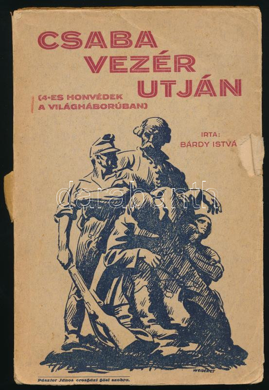 Bárdy István: Csaba vezér útján. (4-es honvédek a világháborúban.) Orosháza, 1932, Demartsik Ferenc-ny., 112 p. Egyetlen kiadás. Kiadói papírkötés, a borítón és a gerincen sérülésekkel, belül a lapok nagyrészt jó állapotban. (Ritka!)