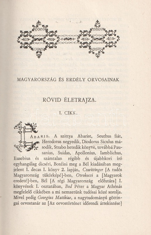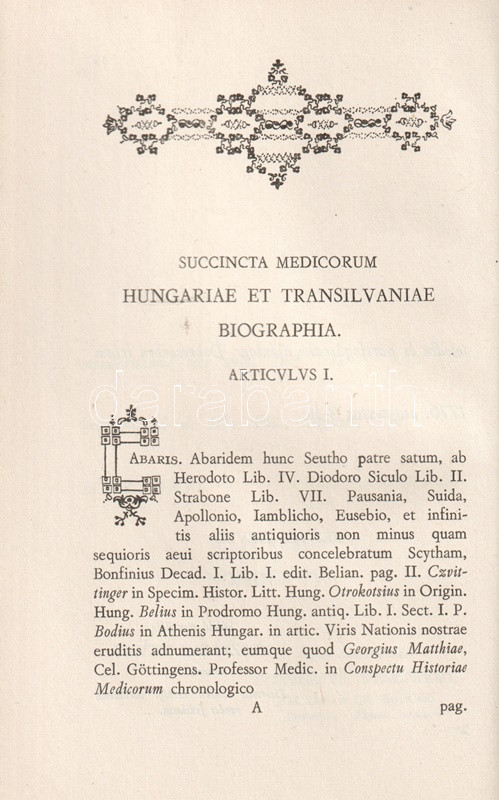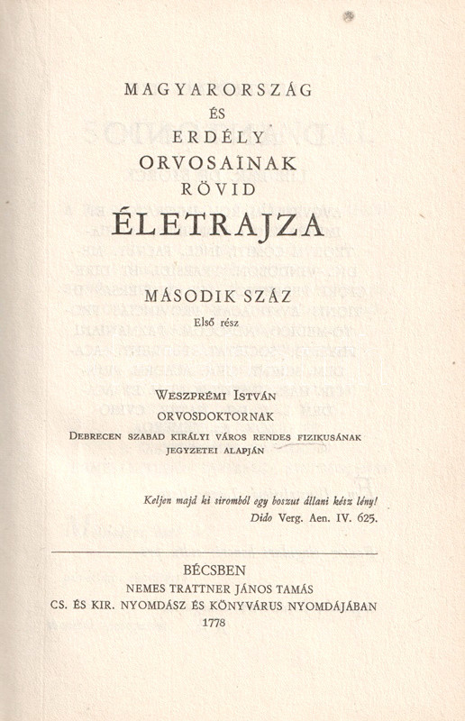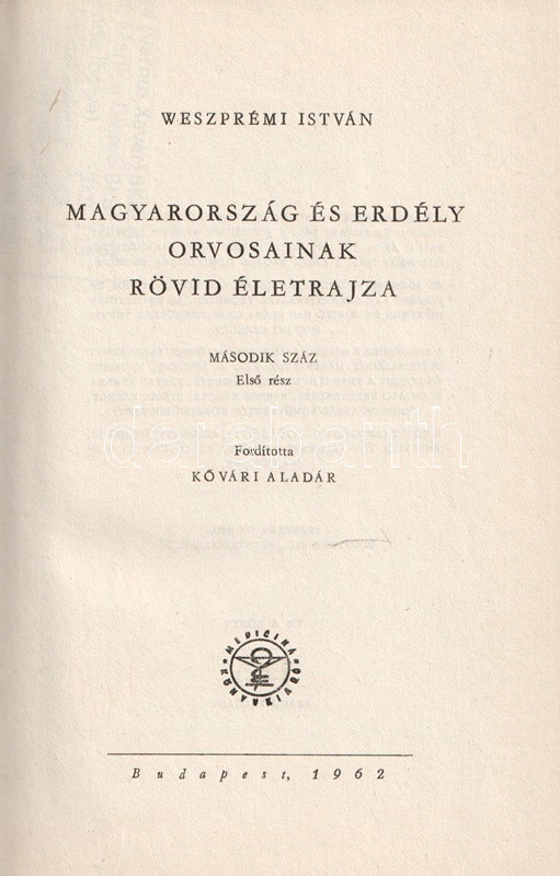 Magyarország és Erdély orvosainak rövid életrajza. Succinta medicorum Hungariae et Transylvaniae biographia. Fordította Kővári Aladár. Második száz, I. rész. (Számozott.)