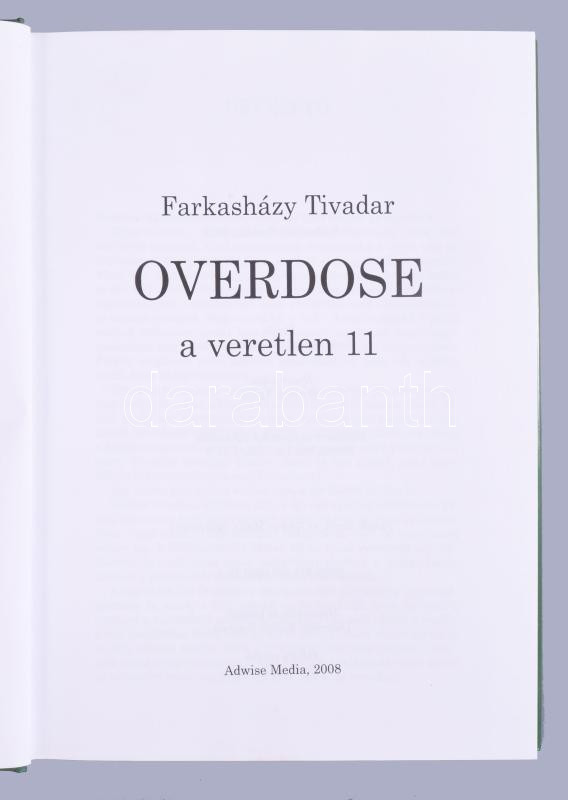 Farkasházy Tivadar: Overdose, a veretlen 11. Bp., 2008, Adwise Media. Fekete-fehér és színes fotókkal illusztrált. Kiadói kartonált papírkötés, kiadói papír védőborítóban.