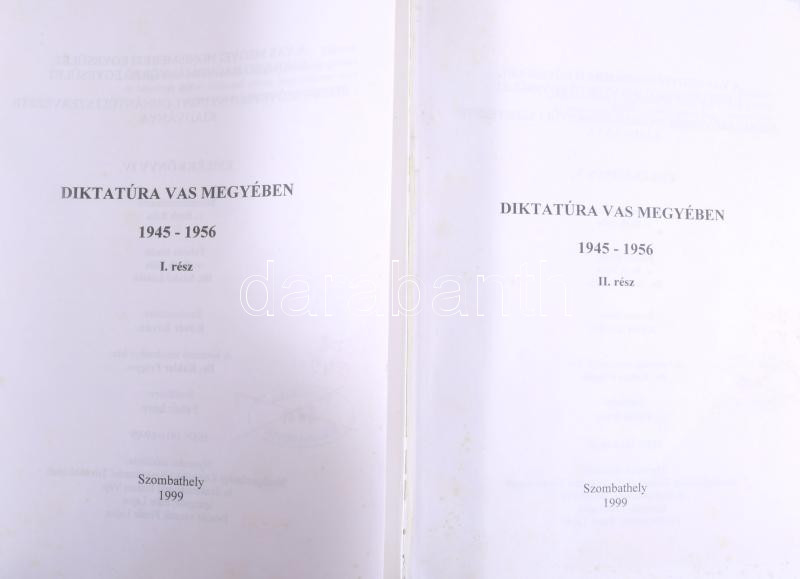 Kövér István (szerk.): Dikatúra Vas megyében 1945-1956 I-II. Szombathely, 1999. Kiadói papírkötés, kissé kopottas állapotban.