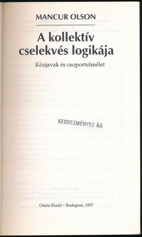 Olson, Mancur: A kollektív cselekvés logikája. Közjavak és csoportelmé... https://www.darabanth.com/de/515-Auktion-Philatelie-Postkarten-Numismatik-Kunstwerke-Bucher-Schreibwaren-Schmuck/518.0/Bucher/Bucher-Sozialwissenschaften~1047/Olson-Mancur-A-kollektiv-cselekves-logikaja-Kozjavak-es-csoportelmelet-Bp-1997-Osiris~II3486500