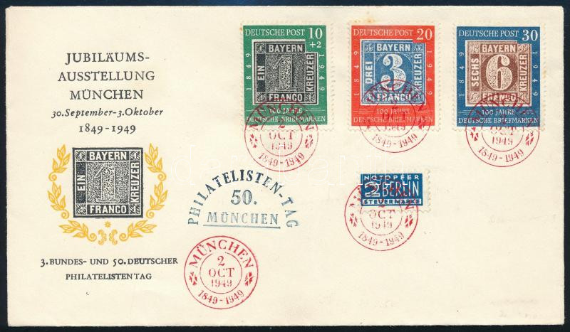 NSZK 1949 100 éves a német bélyeg Mi 113-115 alkalmi borítékon