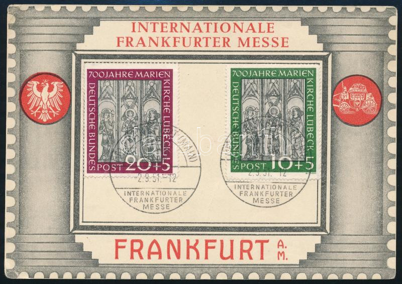 NSZK 1951 Marienkirche sor Mi 139-140 a Frankfurti vásár emléklapján alkalmi bélyegzéssel