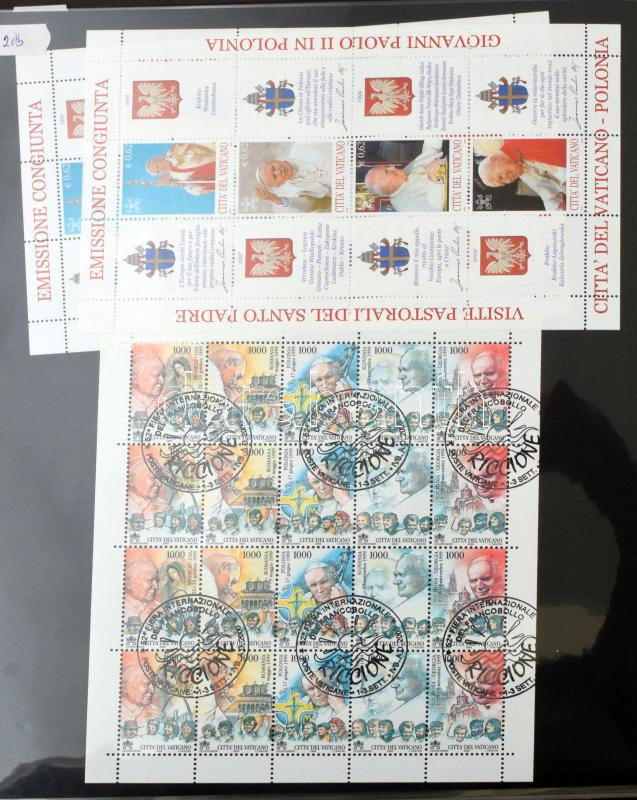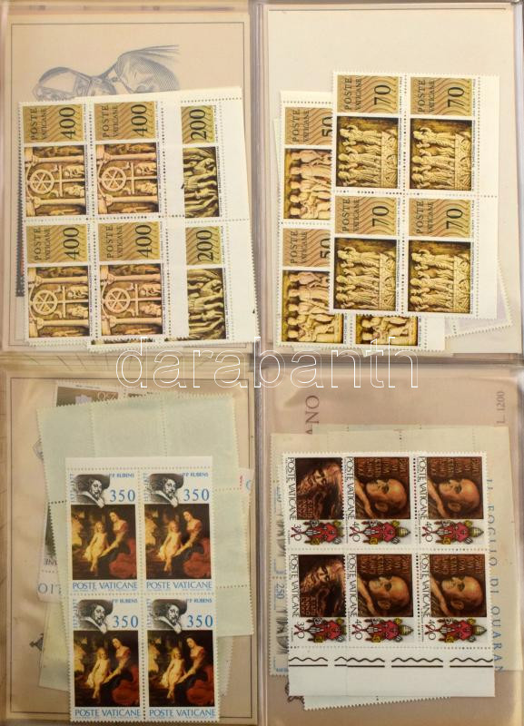 Vatikán postatiszta négyestömb gyűjtemény + hozzá FDC-k, kisívek, CM-k, díjjegyesek gyűrűs berakóban
