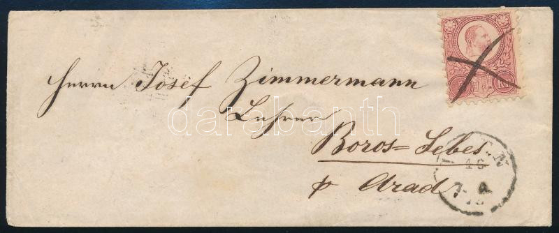 1873 Réznyomat 5kr levélen, tollvonásos érvénytelenítéssel, a hátoldalon érkezési bélyegzésekkel, "WIEN" - "BOROS SEBES"
