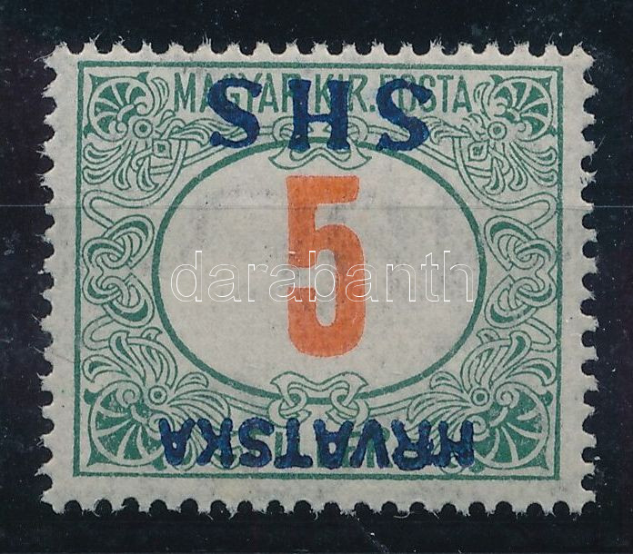 SHS 1918 Portó 5f fordított felülnyomással