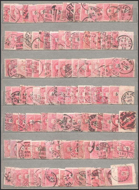 1874-1889 Színes- és Feketeszámú Krajcáros bélyegek, fogazás és vízjel azonosítás nélkül, összesen 216 db kétoldalas A4-es berakólapon