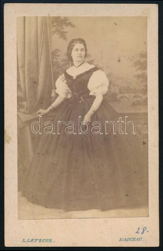 1864 Hölgyportré, keményhátú fotó Letzter Lázár kassai műterméből, 10,5×6,5 cm