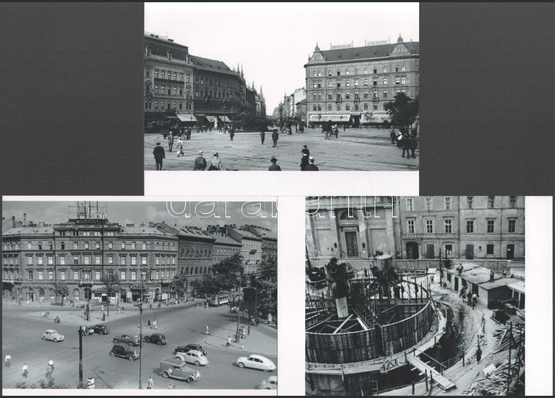1910 és 1970 között, eltérő időben készült felvételek Budapesten (Deák tér, Baross tér, Oktogon), 3 db modern nagyítás, jelzés nélkül, 15x21 cm