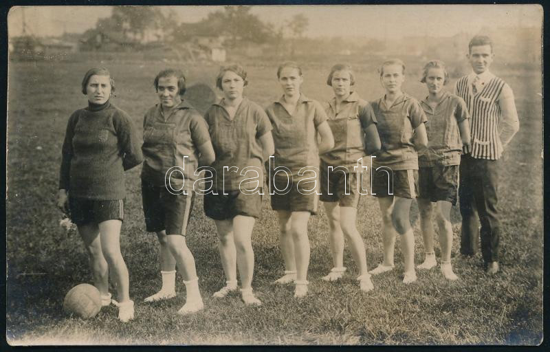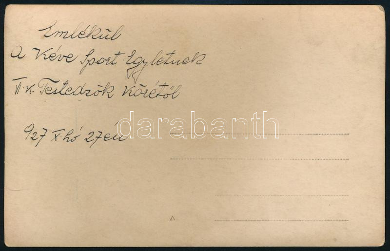 1927 A VI. kerületi Testedzők Köre női labdarúgói, fotólap, a hátoldalon feliratozva, 9x14 cm