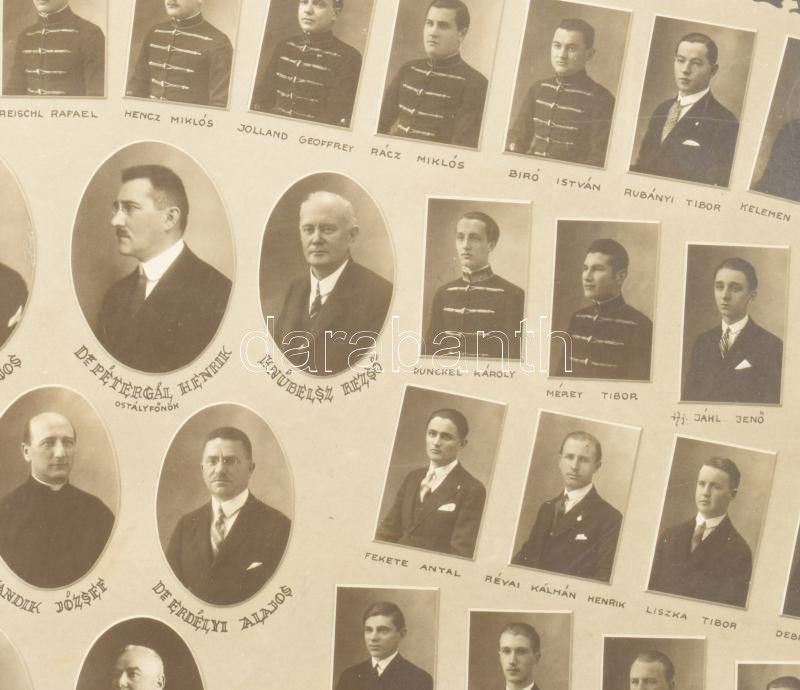1929 Budapesti II. ker. kir. egyetemi kath. reálgimnázium tanári kara és végzett növendékei az 1928-29. tanévben, tablófotó Rasem Viktor műterméből, 19,5x27,5 cm, karton: 33x39 cm