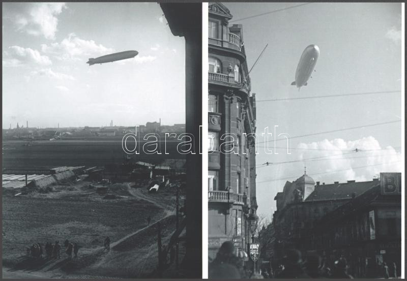 1931 Budapest, Zeppelin a város felett, 2 db modern nagyítás, jelzés nélkül, 21x15 cm