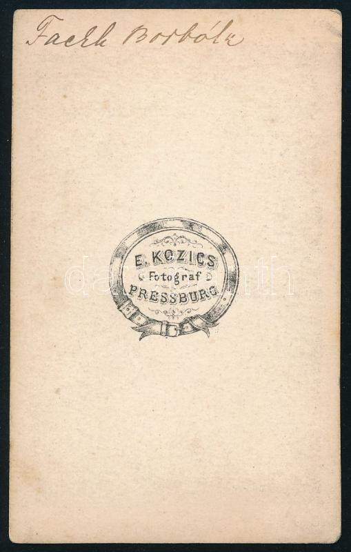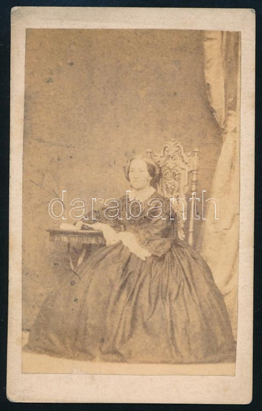 cca 1860-1870 Fackh Borbála bárónő portréja, keményhátú fotó Kozics Ede pozsonyi műterméből, 10,5×6,5 cm