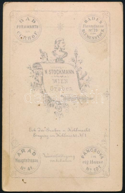 cca 1865 Josefine Gallmeyer (1838-1884) osztrák színésznő, keményhátú fotó Stockmann (Arad, Pancsova, Bécs) műterméből, 10,5×6,5 cm