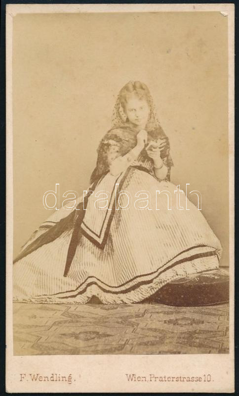 cca 1865 Josefine Gallmeyer (1838-1884) osztrák színésznő portréja, keményhátú fotó Wendling bécsi műterméből, 10,5×6,5 cm