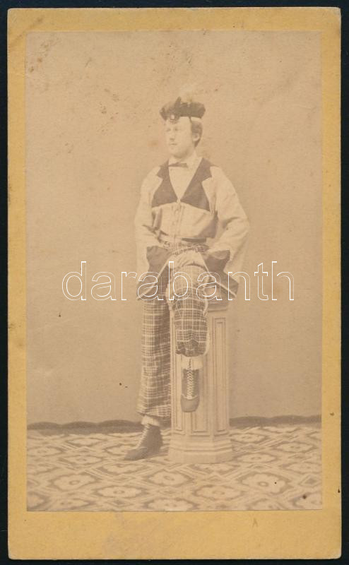 cca 1870 Férfi jelmezben, keményhátú fotó Pachinger rozsnyói műterméből, 10,5×6,5 cm