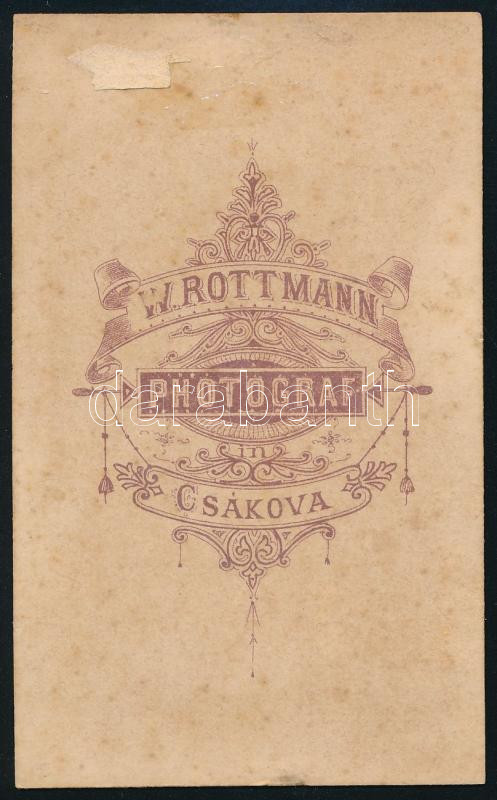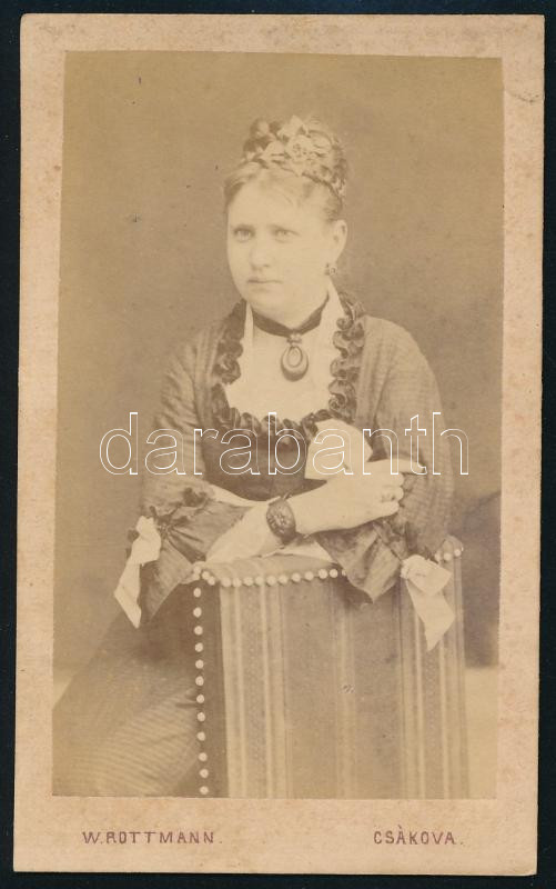 cca 1870 Hölgy portréja, vizitkártya W. Rottmann csákovai (Ciacova) mű...