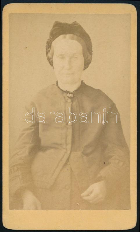 cca 1875 Idős hölgy portréja, keményhátú fotó Szkladányi balassagyarmati műterméből, 10,5×6,5 cm