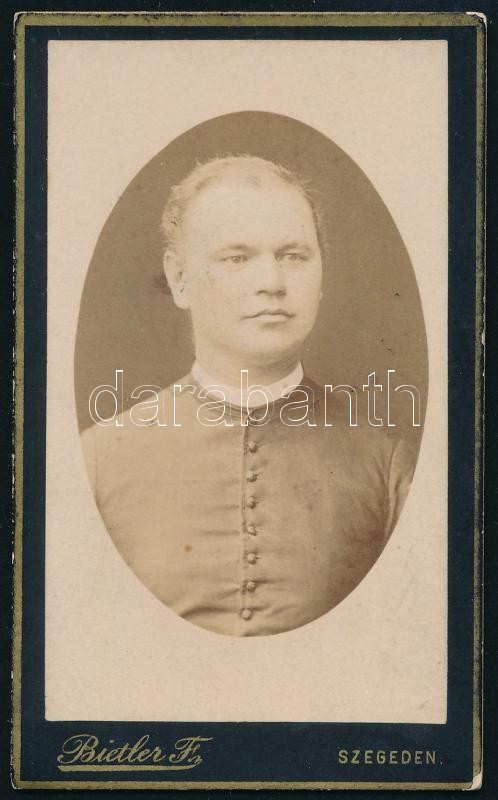 cca 1880 Kálmány Lajos (1852-1919) katolikus pap, néprajzkutató portréja, vizitkártya Bietler Ferenc szegedi műterméből, 10,5x6,5 cm