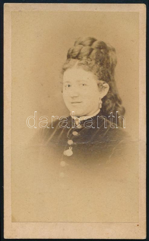 cca 1880 Kóhn Róza portréja, keményhátú fotó Woschnak pozsonyi műterméből, felületén törésnyom, 10,5×6,5 cm