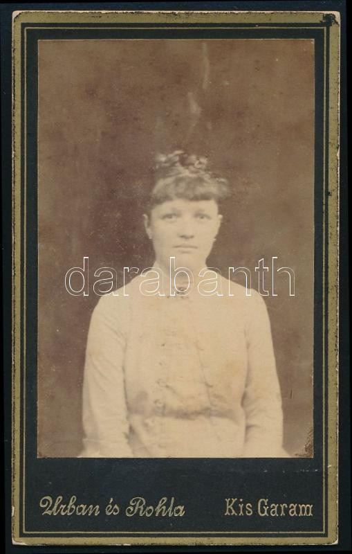 cca 1880 Női portré, keményhátú fotó Urban és Rohla kisgarami műterméből, 10,5×6,5 m