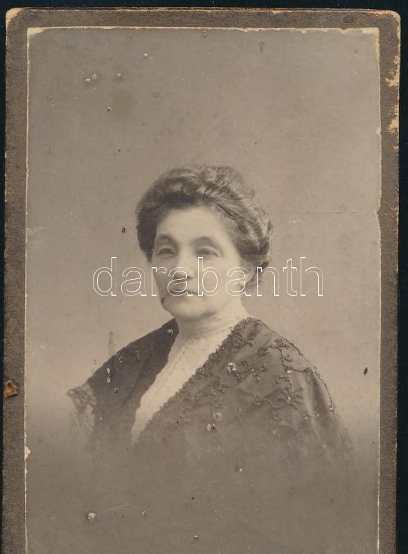 cca 1900 Korbuly Ignác kolozsvári ügyész feleségéről készült fotó, keményhátú portré egy gyulafehérvári műteremből, 10,5×6,5 cm