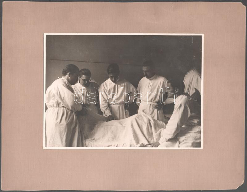 cca 1930-1940 Orvosok műtét közben, nagyméretű fotó kartonon, 17x23 cm... https://www.darabanth.com/de/515-Auktion-Philatelie-Postkarten-Numismatik-Kunstwerke-Bucher-Schreibwaren-Schmuck/518.0/Fotografie/Foto~1061/cca-1930-1940-Orvosok-mutet-kozben-nagymeretu-foto-kartonon-17x23-cm-karton-27-5x35-cm-plus-Dr~II3492802