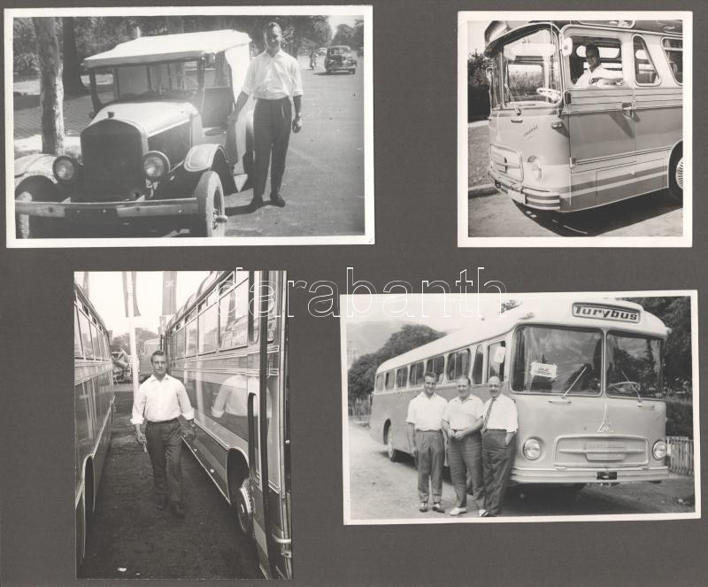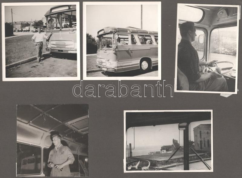 cca 1960 9 db fotó autóbuszokról, albumlapra ragasztva, 9×9 és 8,5×13,5 cm közötti méretekben
