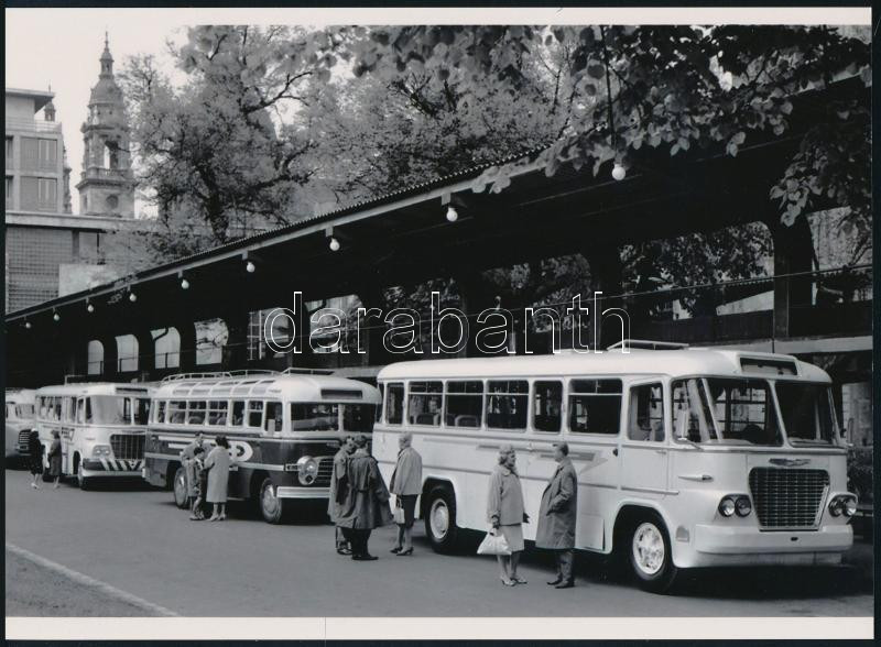 cca 1960 Budapest, az Engels téri autóbusz-állomás Ikarus járművekkel, 1 db modern nagyítás, jelzés nélkül, 15x21 cm