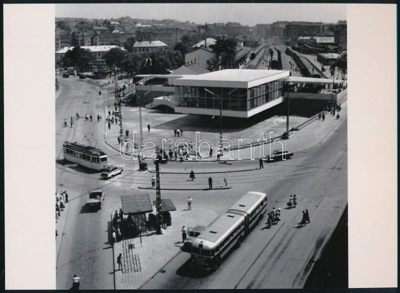 cca 1965 Budapest, Déli pályaudvar, autóbusszal és villamossal, 1 db modern nagyítás, jelzés nélkül, 15x21 cm