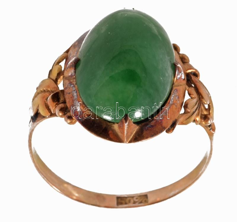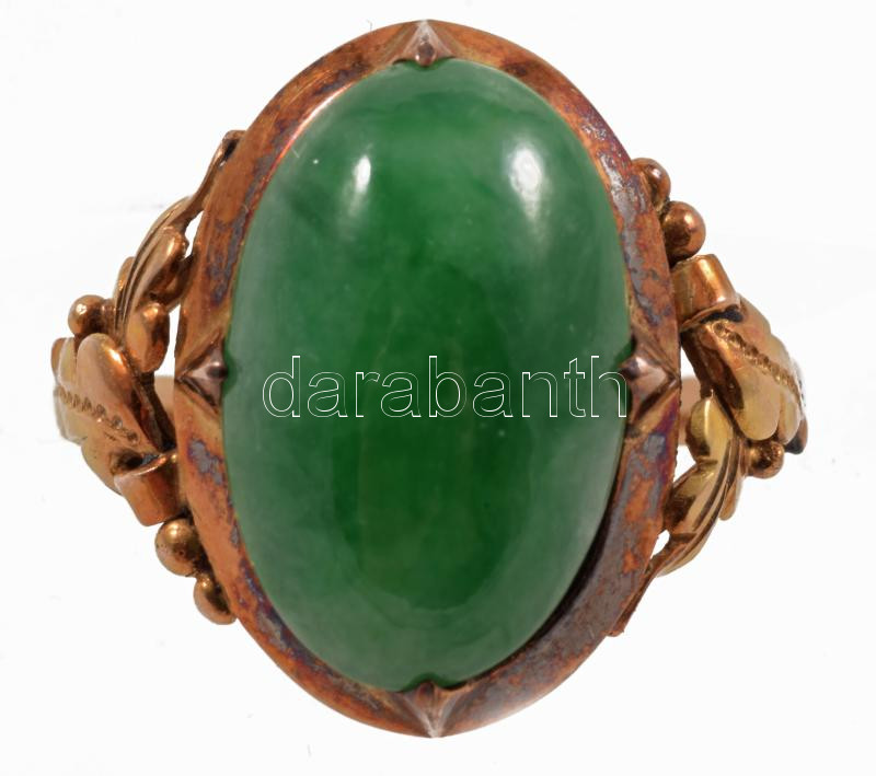 14k arany (Au) gyűrű smaraddal, jelzett, m: 52, br 7,22 g