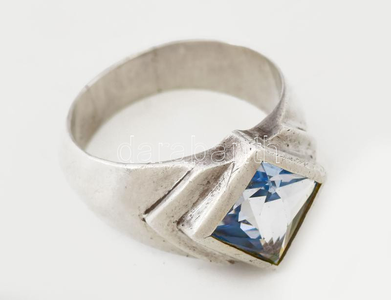 Ezüst (Ag) gyűrű, kék kővel, jelzett, m: 68, 14,2g