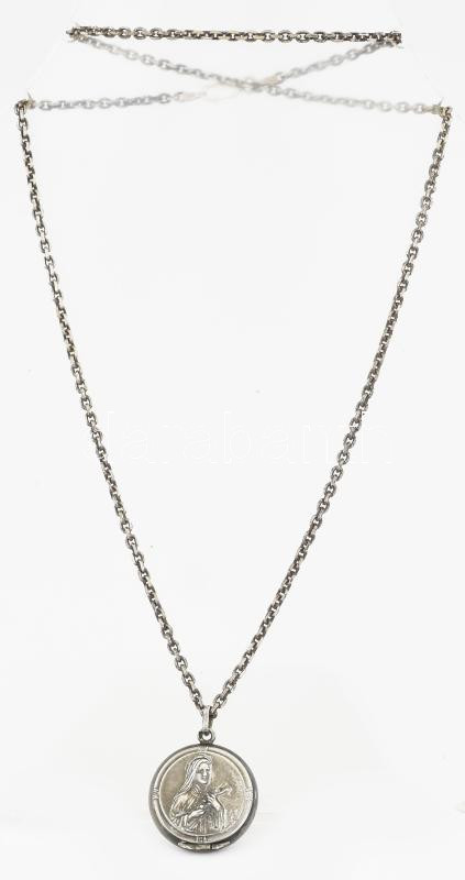 Ezüst (Ag) nyaklánc Mária medállal, jelzett, h: 55 cm, 15g