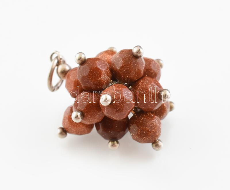 Ezüst(Ag) barna gyöngyös medál, jelzett, h: 2,5 cm, bruttó: 5,2 g
