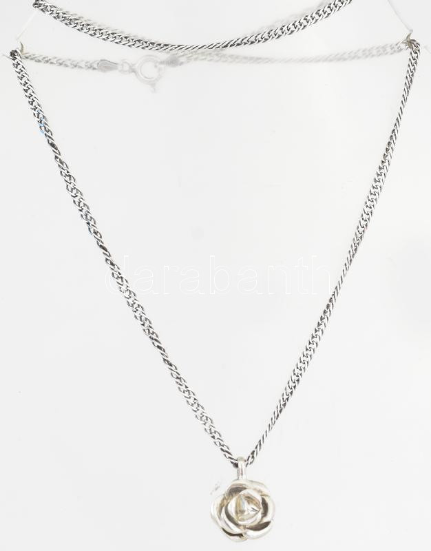 Ezüst(Ag) pancer nyaklánc rózsa medállal, jelzett, h: 51 cm, d: 1,5 cm, nettó: 9,9 g