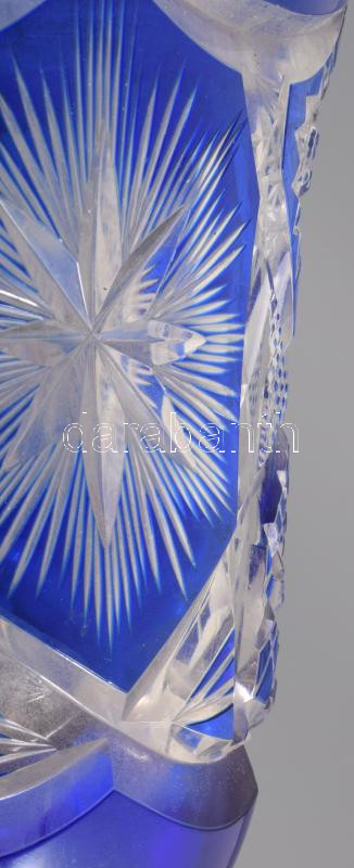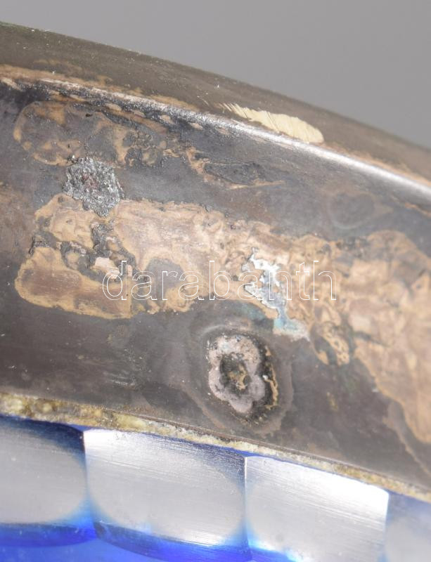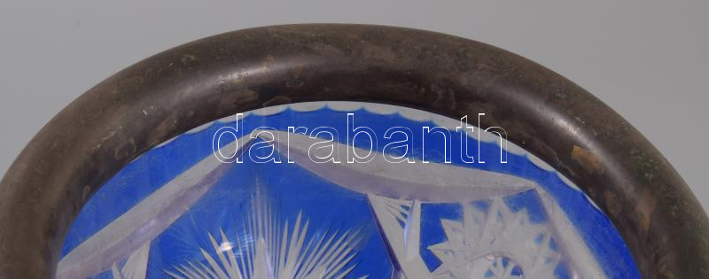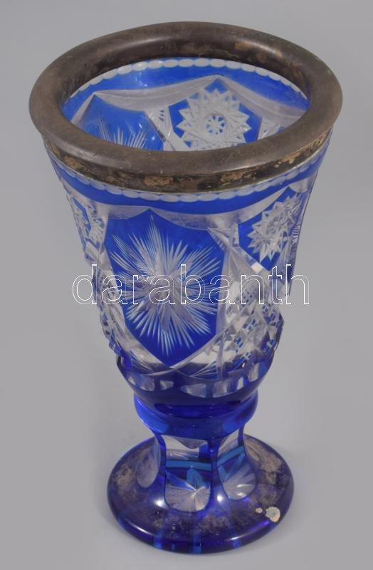 Kéken pácolt kristály kehely, ezüst (Ag) peremezéssel, jelzett, m: 21 cm
