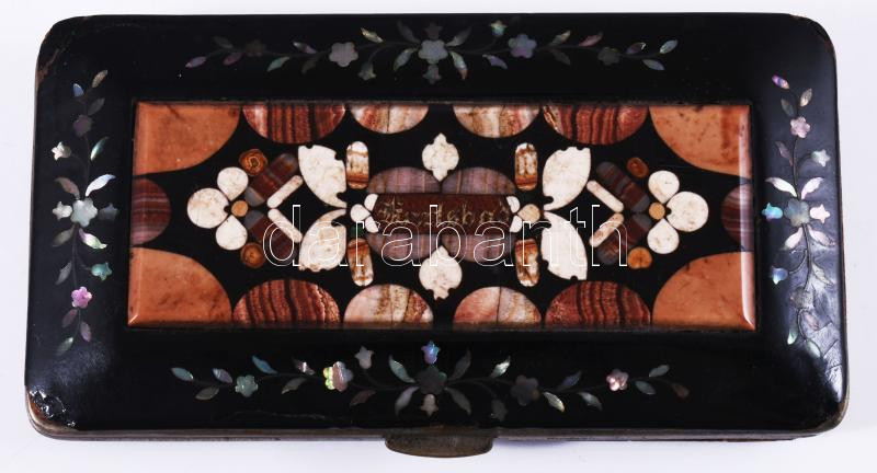 Szemüvegtok ca 1900 : Karlsbad felirattal, bőr, ásvány berakásokkal szép állapotban 14x7 cm