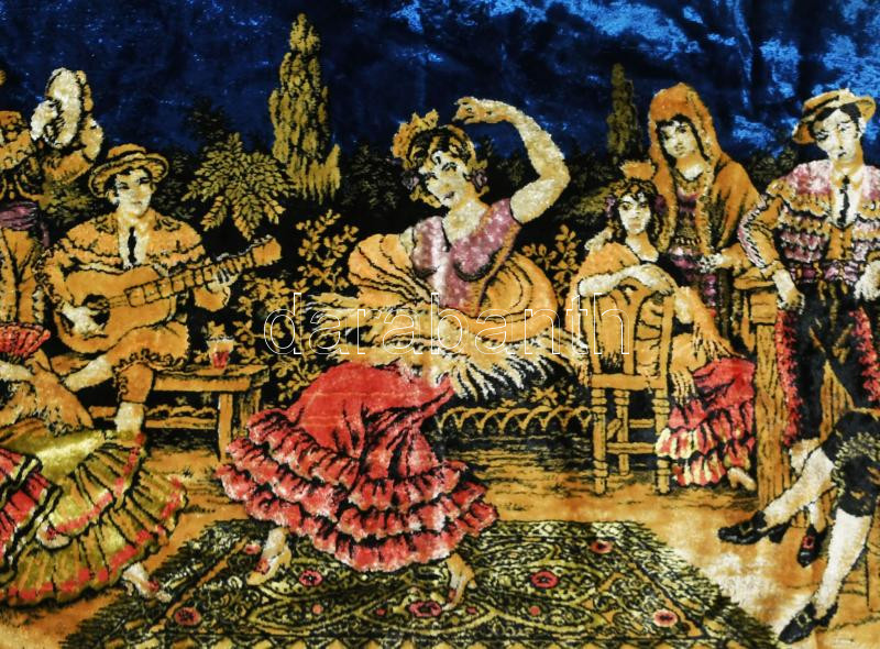 Mulatozó társaság, faliszőnyeg, kis hibával, 180x120