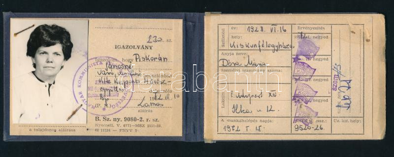 1972-1978 KISZ Központi Művészegyüttes fényképes arcképes igazolványa