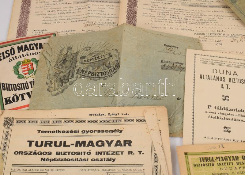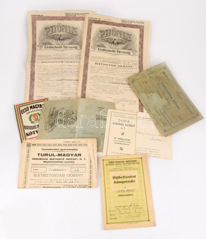 cca 1910-1935 9 db vegyes biztosítási okmány