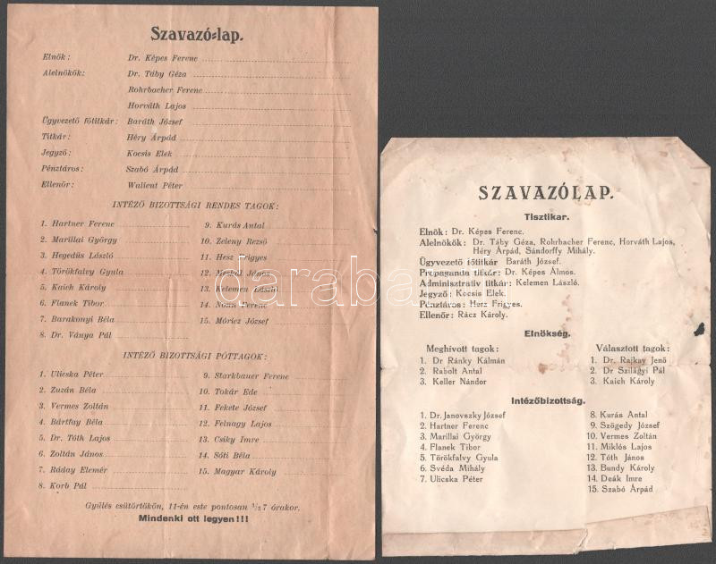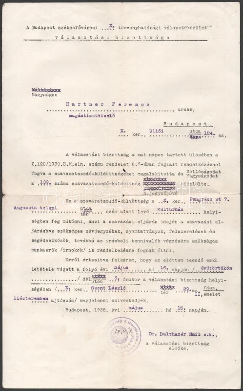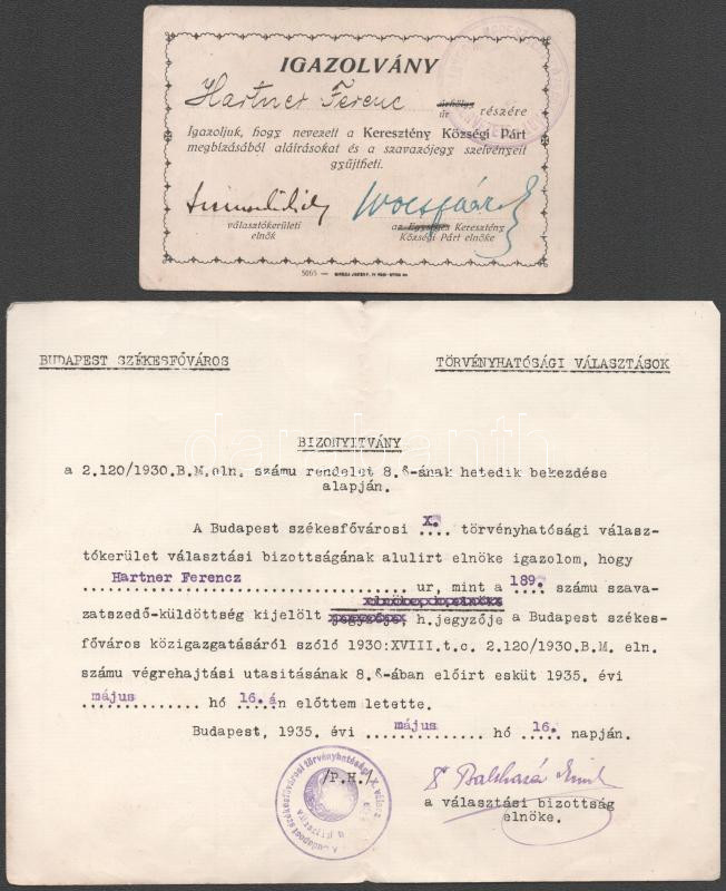 cca 1935 Vegyes választási irat tétel, igazolvány, szavazólap, stb.