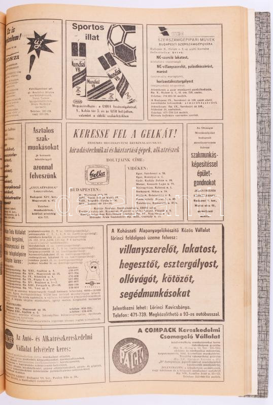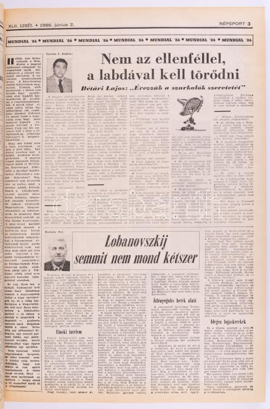 1986 A Népsport 1986-os mexikói labdarúgó-világbajnokságról tudósító számai egybekötve, félvászon-kötésben, jó állapotban