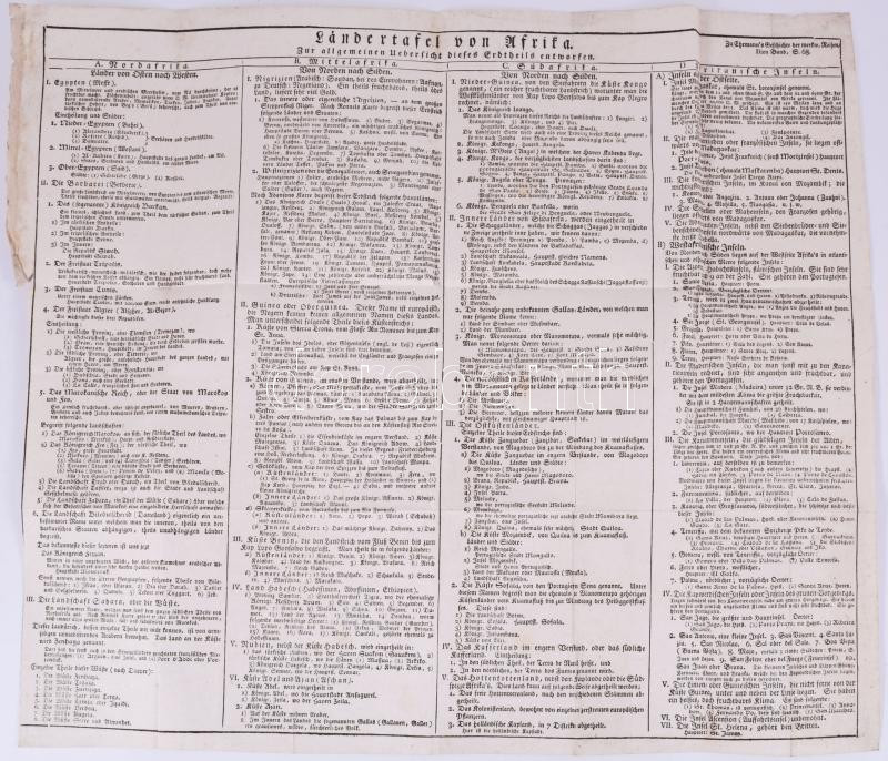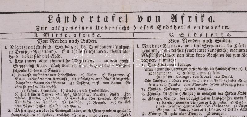 ca 1850 Afrikai országainak, régióinak és politikai egységeinek felsorolása és osztályozása. Landertafel von Afrika. Nagy méretű tábla 50x43 cm